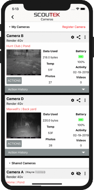 Scoutek offers the ability for friends to share cameras with each other, allowing multiple users to view and manage shared cameras and their photos;